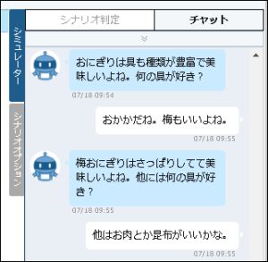 {{チャットボット発言}}と記述すると、定義したユーザー変数「チャットボット発言」の値が展開されます。