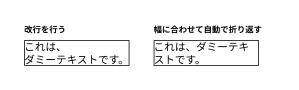 テキストの折り返しには、テキスト入力時に改行を入れる場合と、横幅に合わせて自動的に折り返す場合があります。