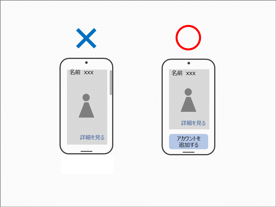 重要なボタンが、ユーザーが画面をスクロールしなければ見えない位置に配置されていることは、ユーザビリティの観点から大きな問題となります。