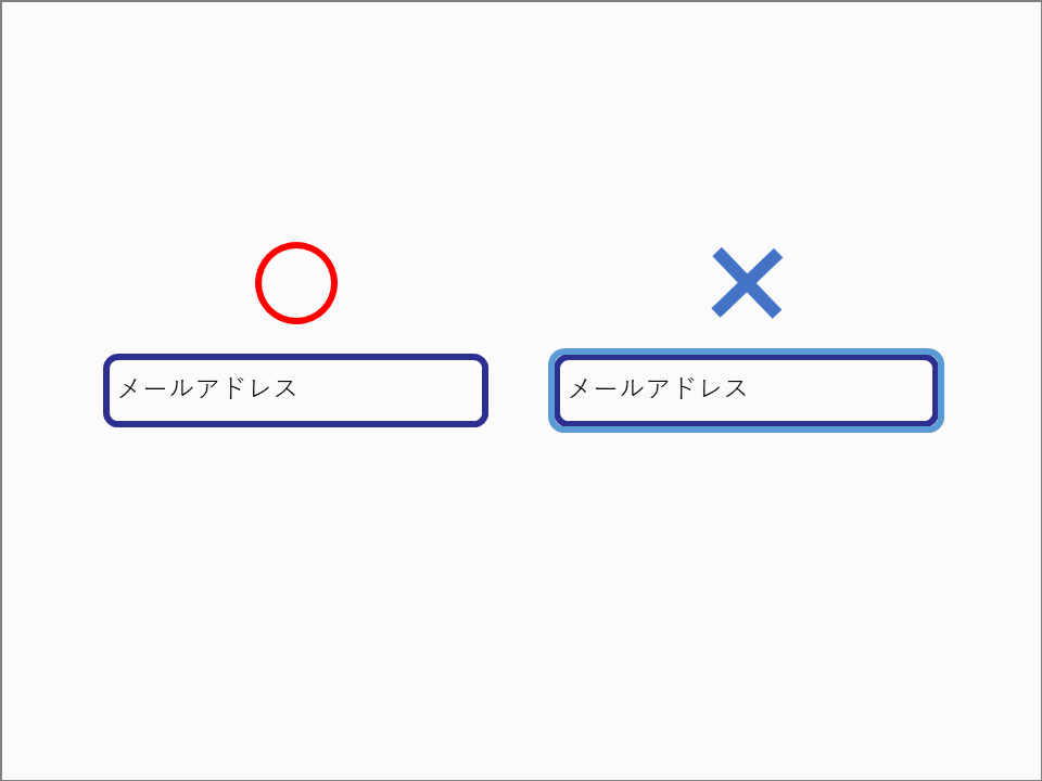 通常のテキストボックス(左)と、Safari独自の枠線が表示され、枠線が二重になったテキストボックス(右)