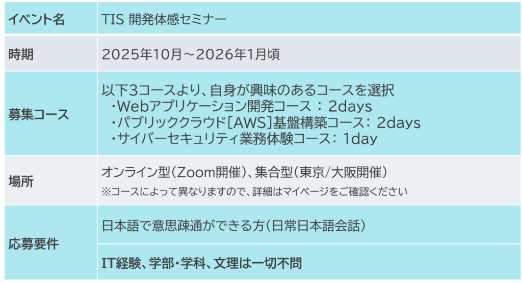 そして、イベントを通してIT業界で働くイメージをつくった上で、選択肢にTISも入れてもらえると嬉しいです。